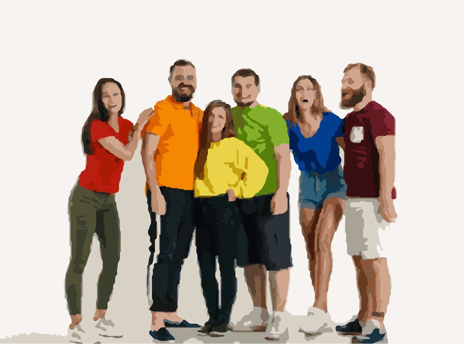 The rule about the dominance of the subject of the photograph still applies. Too many people in a picture will cause their faces to "blend in". The following example demonstrates this: