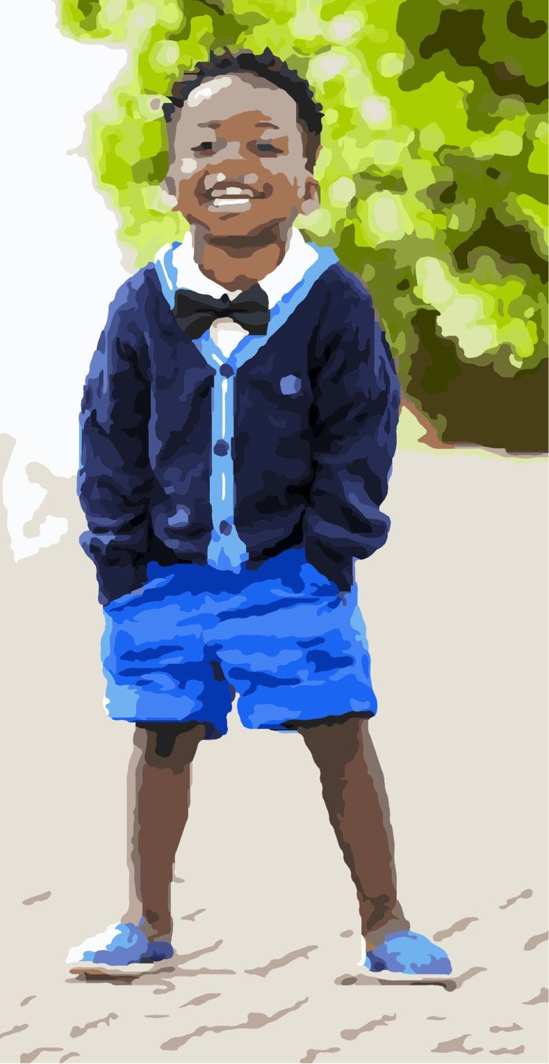 In our paint from your own picture kit generator you have the possibility to choose the number of colours. It always depends on the uploaded image. Sometimes 24 colours are enough and the result is a beautifully clear image full of preserved details. However, sometimes when the details blend together after generation due to small color differences, more colors need to be used. The generator then has a larger colour range and the details have a better chance of not fading and being preserved. However, it always depends on the photo. The example shows, especially on the boy's nose, that more color will preserve more detail: